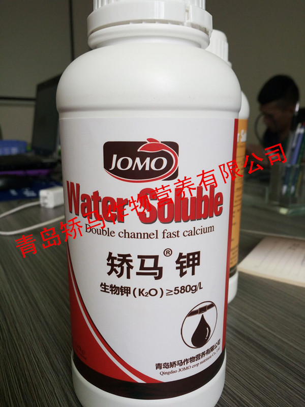 矯馬鉀 主要成分: 鉀 (K2O): 580g/ L 產(chǎn)品性狀: 淡棕色均勻液體 產(chǎn)品特點(diǎn): 采用‘微碳技術(shù)’其吸收效率是普通鉀肥8倍以上; 膨果快,著色好,產(chǎn)量高,冬季照常吸收,不影響地溫; 迅速增強(qiáng)作物抗病,抗旱,抗寒及抗倒伏能力; 活化土壤,解磷解鉀,培肥地力,防止土壤板結(jié); 不含氯離子,硫離子,不形成鹽,能抑制土壤有害生物的繁殖與生長(zhǎng),減少土傳疾病的發(fā)生。 注意事項(xiàng): 遠(yuǎn)離兒童,避免口服,使用時(shí)避免與皮膚,眼睛等直接接觸; 與其他農(nóng)藥,植物生長(zhǎng)調(diào)節(jié)劑或液體肥料混合時(shí),請(qǐng)?jiān)谙♂屢褐凶詈蠹尤氡酒罚?/font> 再添加本品時(shí),請(qǐng)緩慢添加并攪拌均勻后使用。