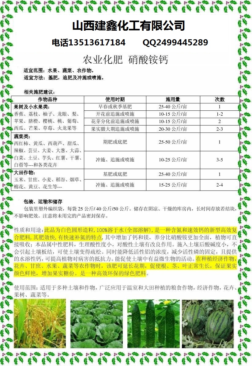 • 山西建鑫肥業有限公司硝酸銨鈣
