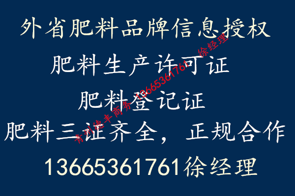 @13665361761專業提供異地肥料品牌授權、出租肥料登記證,肥料登記證到期續展、山東省內生產許可證辦理、農業部菌肥及水溶肥登記證申請、肥料質檢報告及委托檢驗協議、田間小區實驗報告、肥料急性毒理學報告、合格樣品、菌種鑒定報告、肥料化驗員資格證,企業標準辦理、商標注冊及續展、海內外銷售公司注冊、網站建設、網絡推廣及優化、微信公眾號建設及推廣,電話&微信13665361761徐...