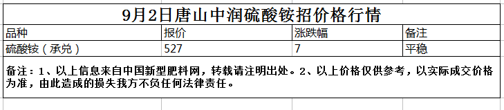 9月2日唐山中潤硫酸銨價格行情
