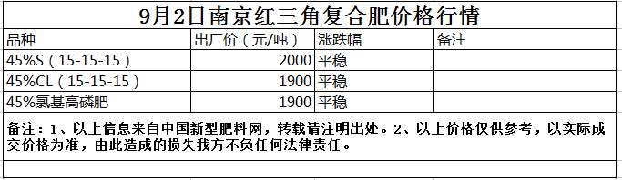9月2日南京紅三角復合肥價格行情