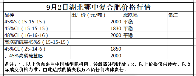 9月2日湖北鄂中復(fù)合肥價(jià)格行情