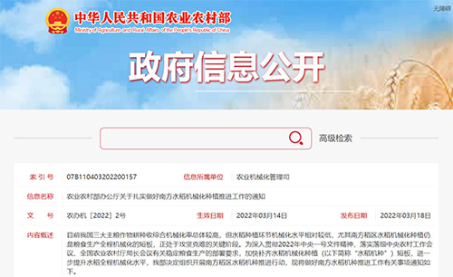 農(nóng)業(yè)農(nóng)村部部署,推進(jìn)水稻機(jī)械化種植