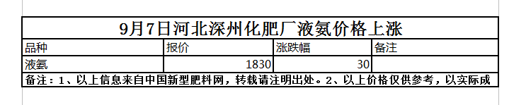 9月7日河北深州化肥廠液氨價(jià)格上漲