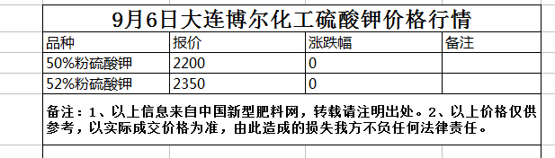 9月6日河南開封青上硫酸鉀價格行情