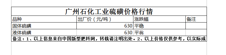 廣州石化工業(yè)硫磺價(jià)格行情
