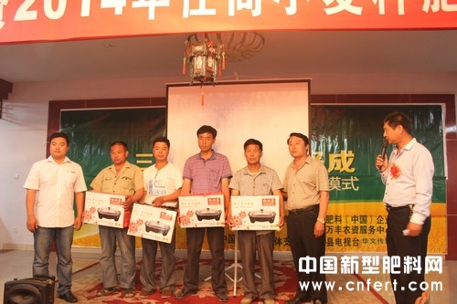 為了更好的推廣種肥同播模式,“小麥種肥同播第一人”,吳橋萬豐農資總經理張風浩推薦為種肥同播作出貢獻的優秀機播手并頒發獎品,機播手們積極參與,提出自己的疑問及合理化的建議,現場與機播手簽訂《住商小麥種肥同播機2014年專項補貼協議》,經過評選,34名機播手獲得補貼并簽訂協議,同時還有100多名意向機播手咨詢此協議,張經理表示會從這100多名機播手中謹慎挑選符合條件的優秀機播手。劉部長、張經理表示對于機播手提出的問題和改進方法,會認真考慮,采納好的建議,在以后種肥同播模式的推廣過程中積極改進,對新簽協議的機播手進行技術上的培訓。