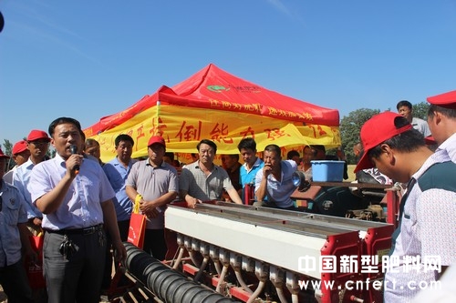 住商肥料特意邀請了中國農業大學吳橋攻關試驗站站長魯來清教授現場培訓指導,魯教授對小麥種植技術進行了培訓,教授冬小麥”四統一”栽培技術:選擇適宜的土壤;結合整地,全部底施,小麥生育期不再追肥;底墑水調整土壤出水,足墑播種;選擇適宜的品種;確保整地和播種質量;適當晚播,增加密度,以苗保穗;拔節前控水,適時適量;暄土保墑。魯教授提出,七分農機,三分農戶,強調機播手的重要性,機播手要負好責任精細耕地、選好播種時期、精細播種、保證播種質量、暄土保墑。住商肥料劉建柱部長向大家進一步介紹了住商肥料發展的歷史以及種肥同播的優勢,劉部長表示,隨著土地流轉速度的加快,新型農民對農化服務的要求越來越高,同時傳統的營銷模式很難把好的技術、好的產品送到農民手中,新推廣的這種種植模式正好解決這一問題,住商肥料經過多年的實踐和改進,探索出這種省工省時節約成本的小麥種肥同播模式,能真正的讓農民獲利,經過三年的努力,住商肥料已在全國主要小麥種植區推廣種肥同播的模式,并得到廣泛認可和好評。