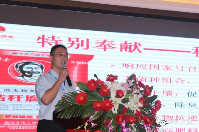 經過近幾年的大刀闊斧的變革,施可豐又重新做了市場定位:新型肥料創新者與領軍者。解永軍董事長引導經銷商一起解決目前農場主、種植大戶等新型經營主體的問題和需求,并對與經銷商之間的合作詮釋了大同思想:建立事業共同體、利益共同體、精神共同體、命運共同體,最終實現大家的施可豐。 中原區總監助理樊果做新品介紹