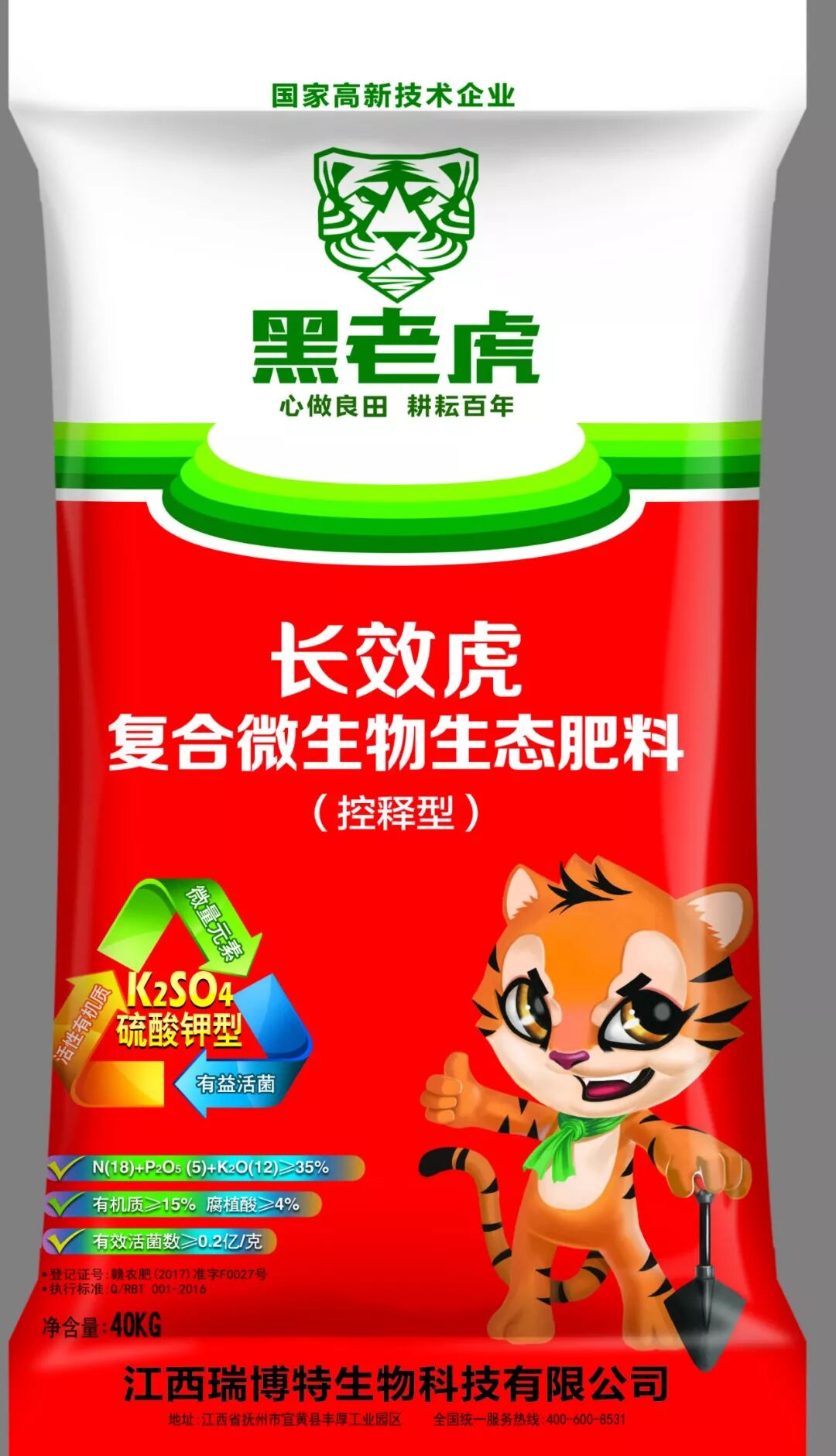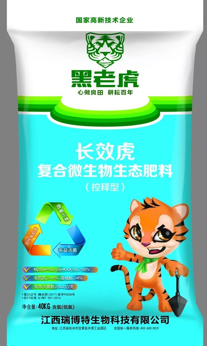 “黑老虎”復合微生物生態肥是瑞博特人引以為豪的創新性拳頭產品,除含有植物必需的氮、磷、鉀大量營養元素外,它還含有有機質、腐植酸、有益菌、中微量元素等,是目前國內化肥行業中不多的營養全面的復合微生物生態肥,使用特殊的微生物菌群與大中微元素營養物質復合而成,能提供、保持或改善植物營養吸收,提高農產品產量,讓你種植的果蔬恢復原生態。 實現了無機肥速效、有機肥緩效、有益菌長效、中微量元素增效“四效合一”的完美結合。